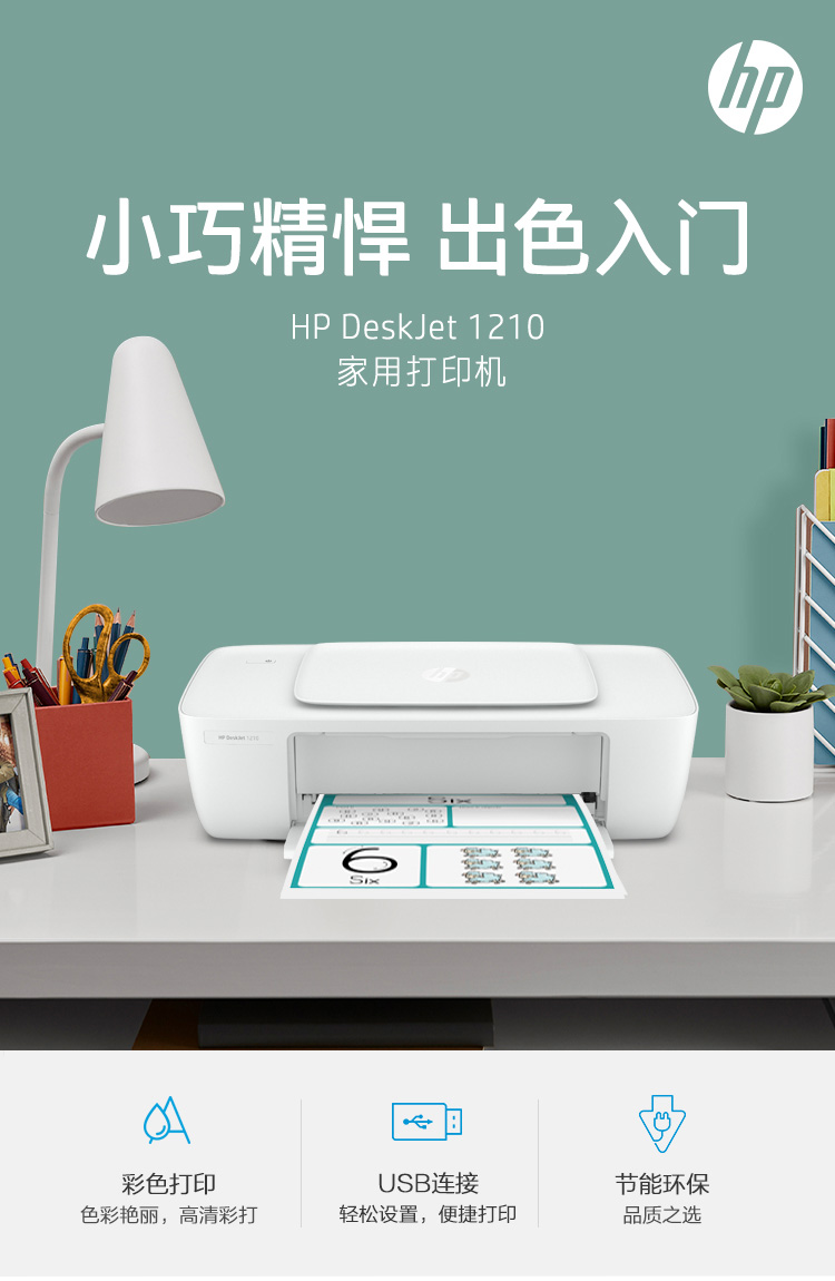 数码惠普(HP)DJ1210彩色喷墨入门级单功能打印机学生家用作业打印