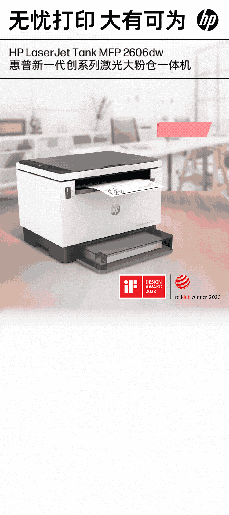 惠普(HP)2606dw自动双面无线激光多功能打印机打印复印扫描商用办公单页成本3分钱