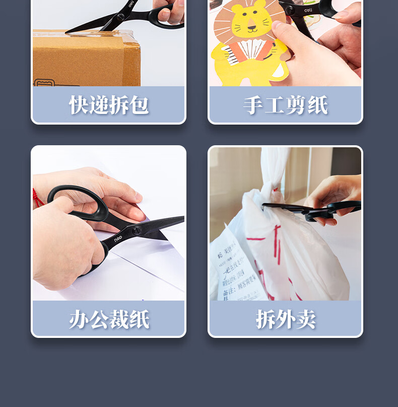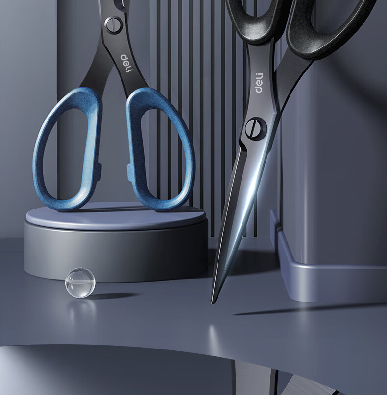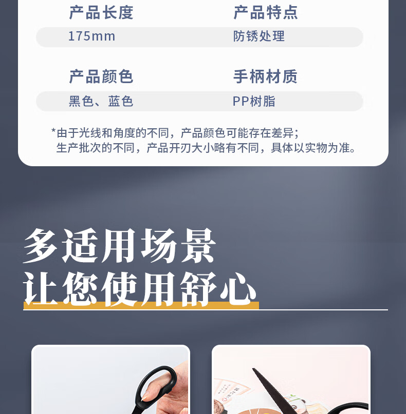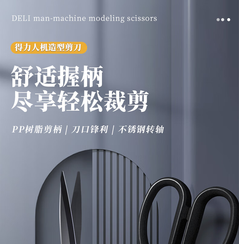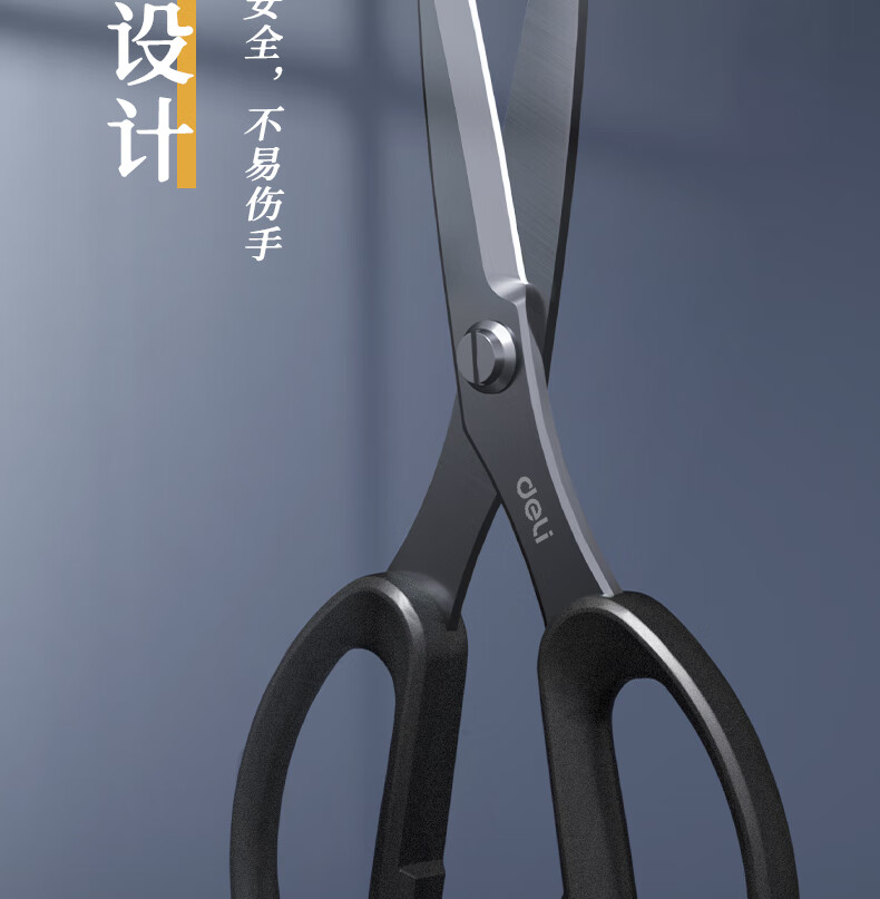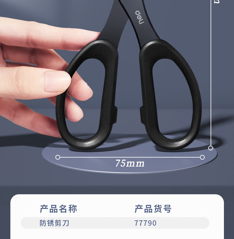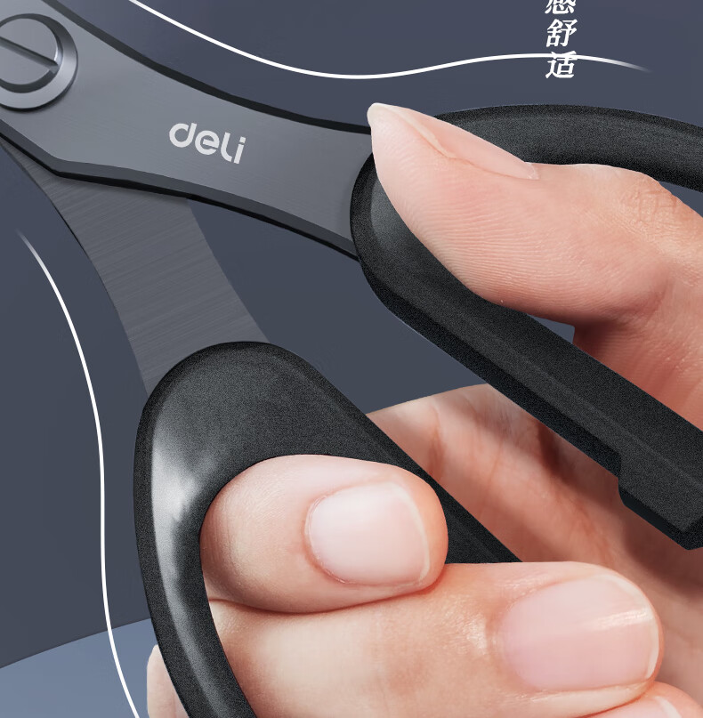得力(deli)175mm人机造型剪刀黑色防锈处理办公用品黑77790