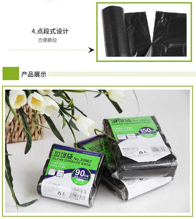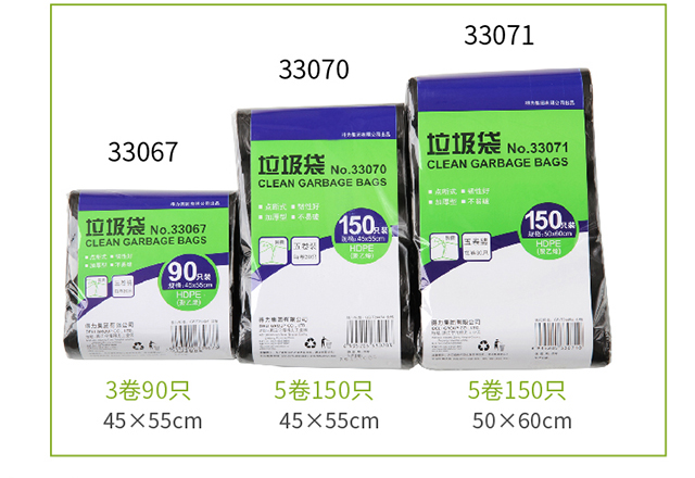得力(deli)5卷(150只)办公生活垃圾袋45*55cm垃圾分类办公用品黑色33070