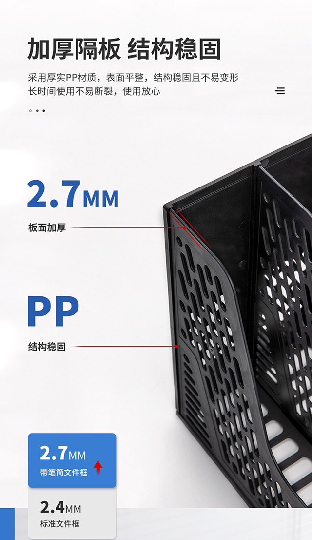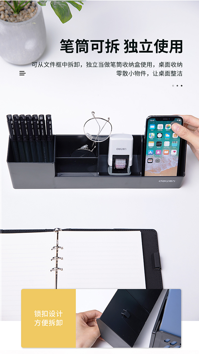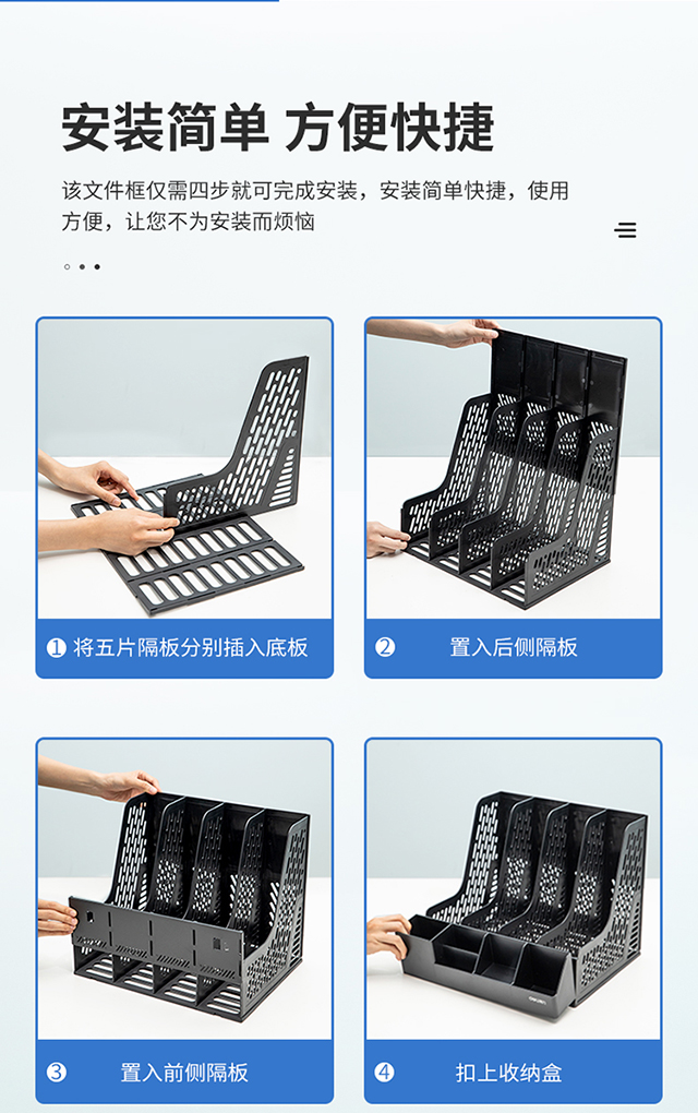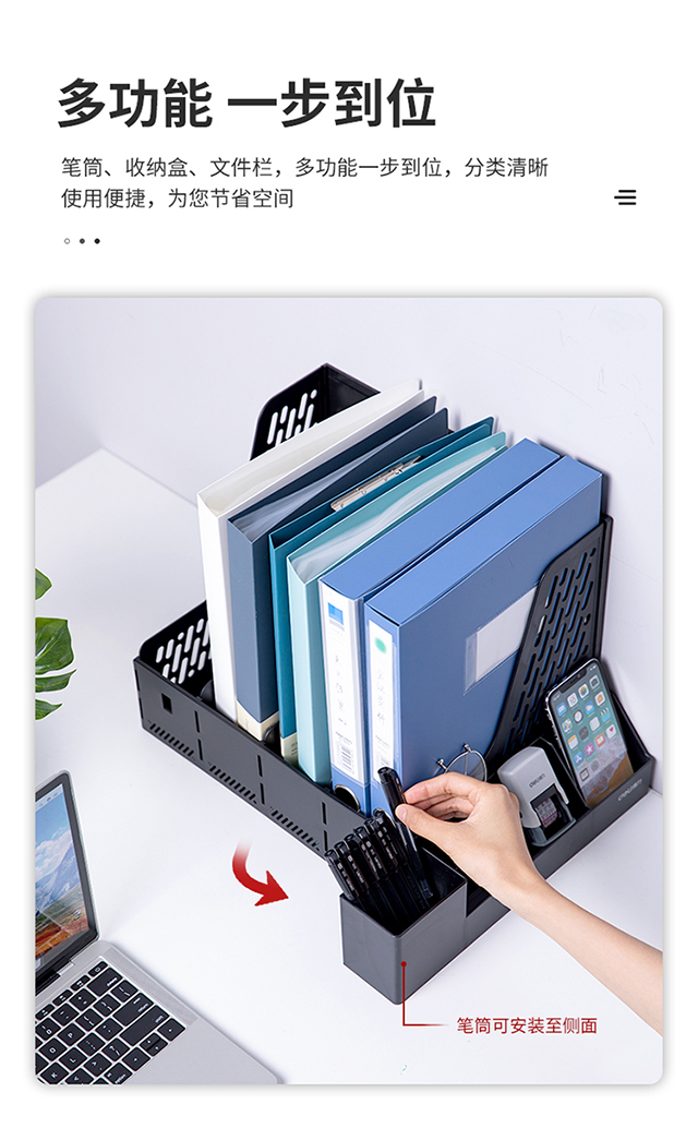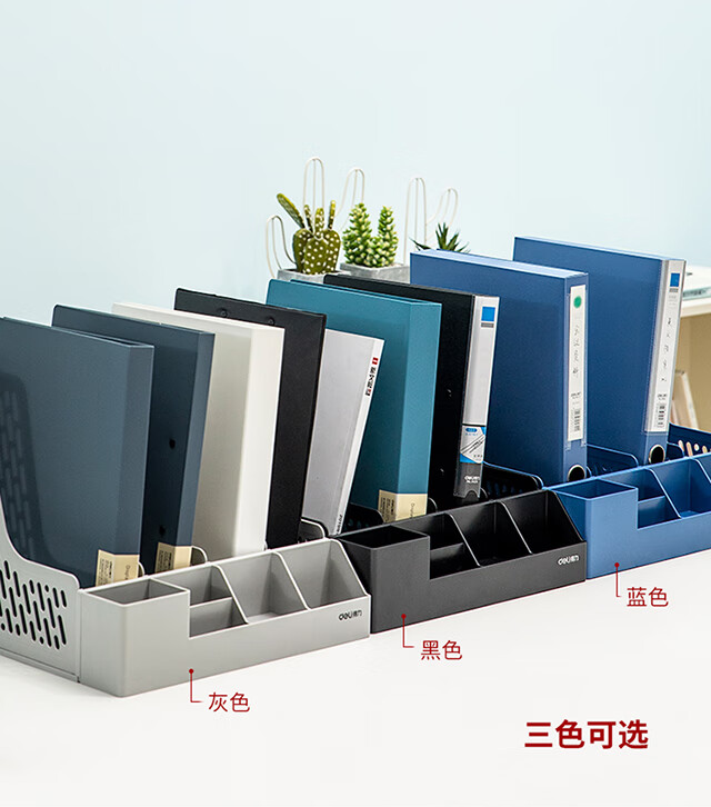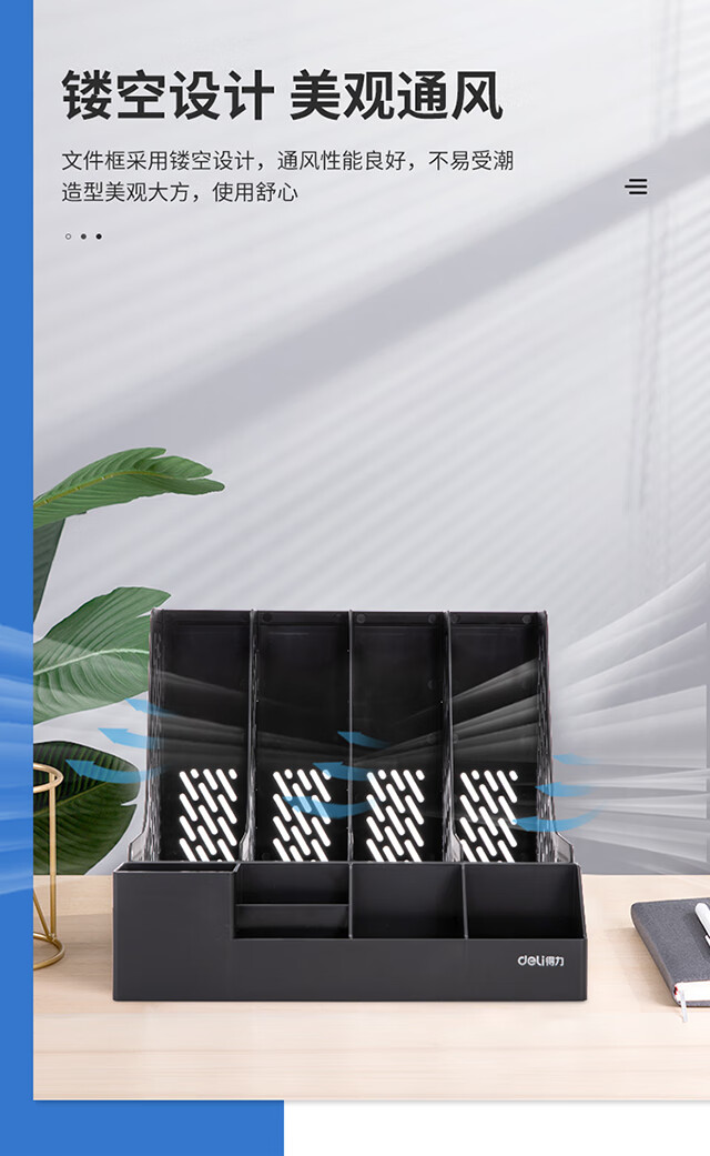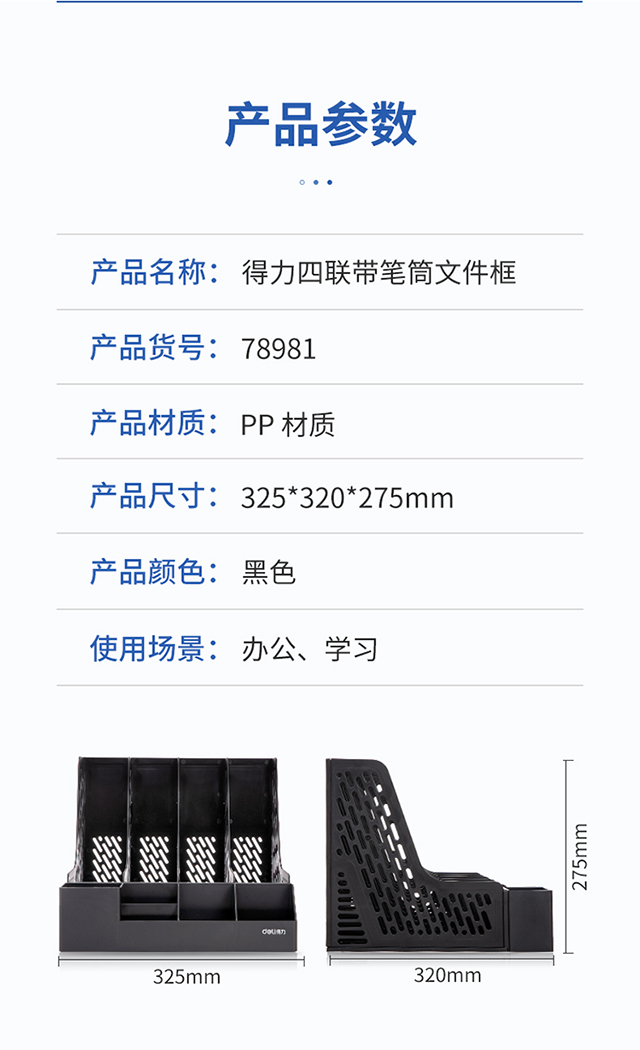 得力(deli)4联带笔筒收纳桌面文件框书立办公室桌面多层资料架子多功能镂空文件架黑色78981