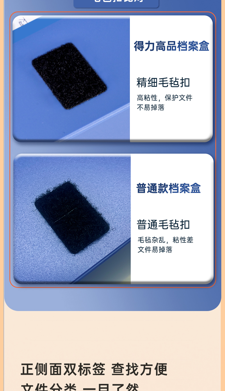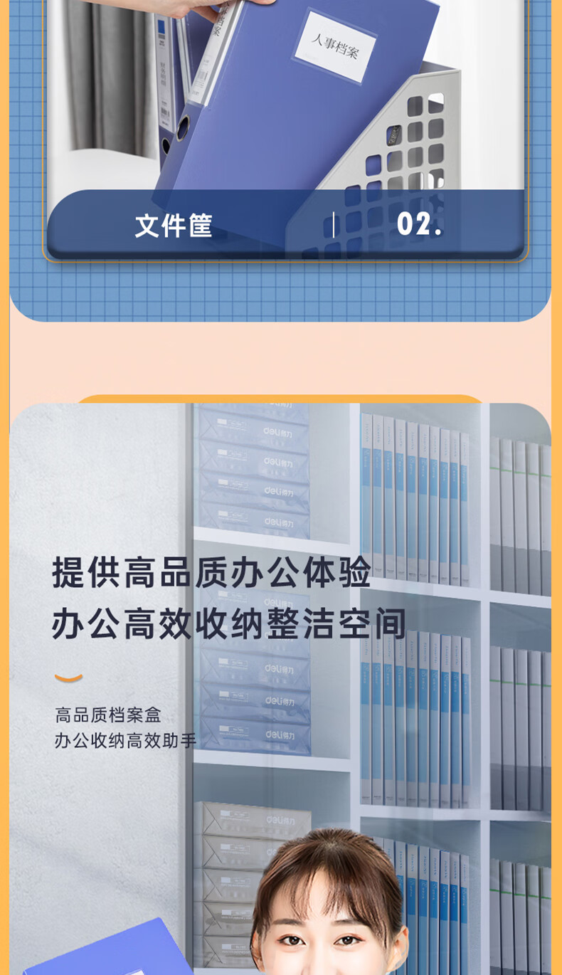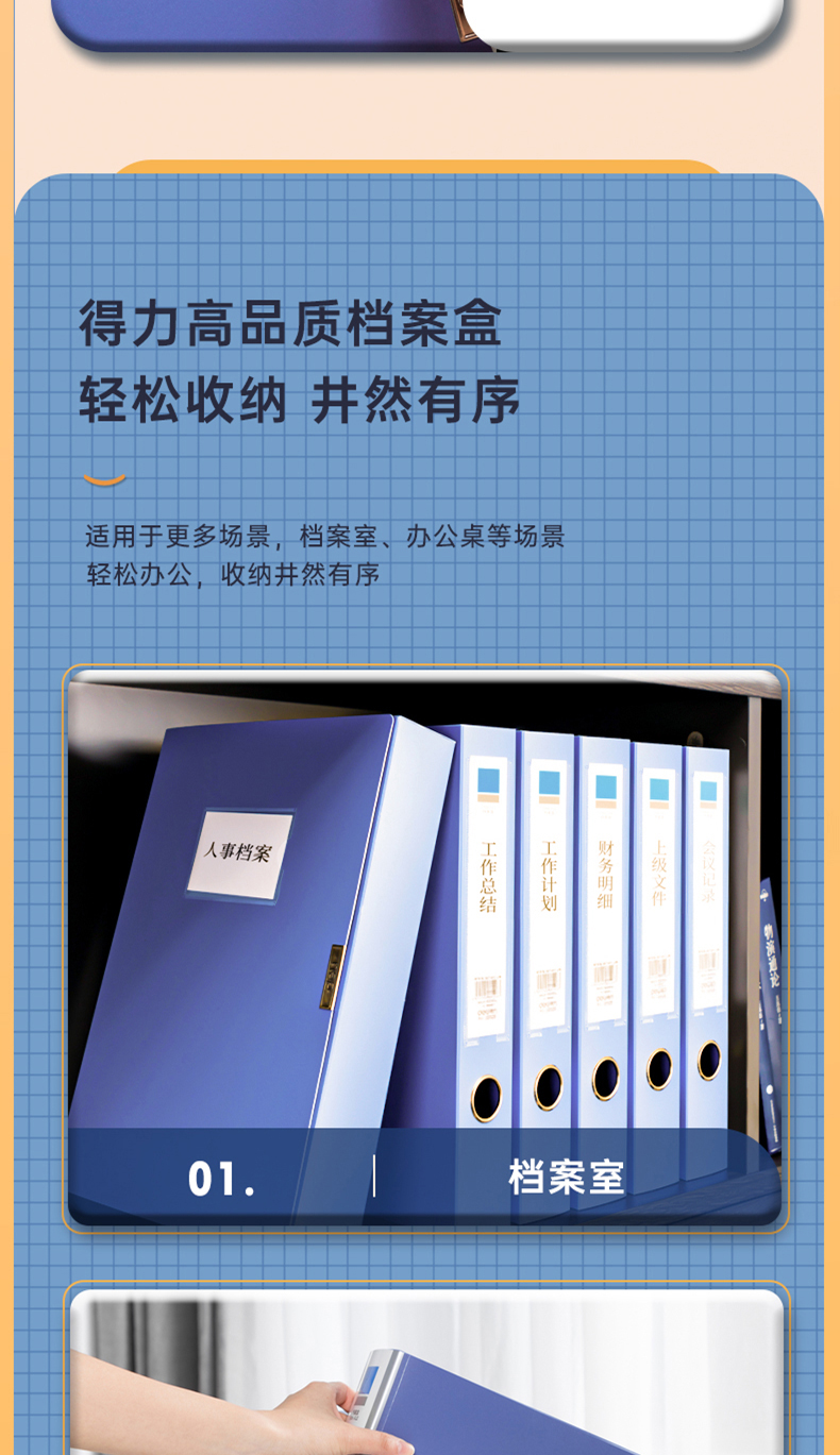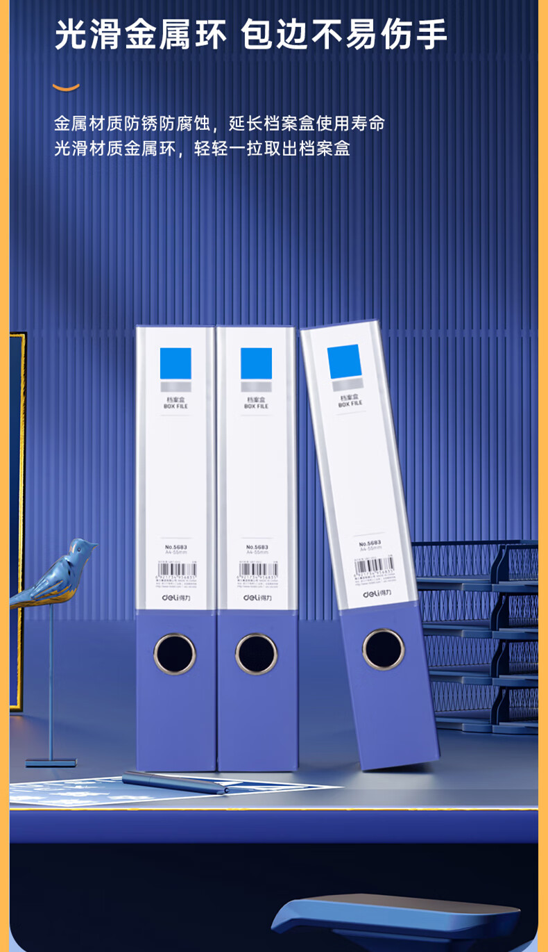 得力(deli)10只55mmA4粘扣档案盒塑料文件盒文件收纳资料盒办公用品升级背条孔槽27036蓝色