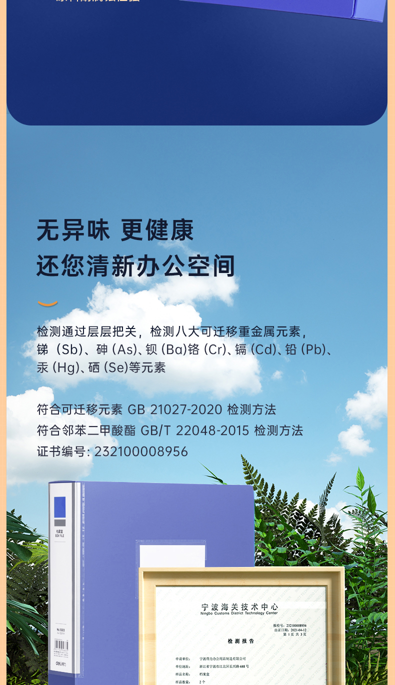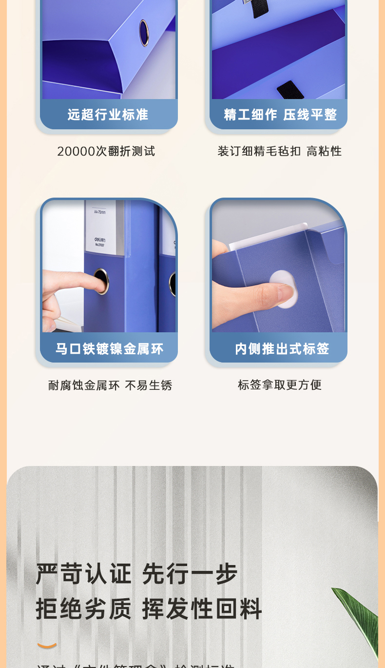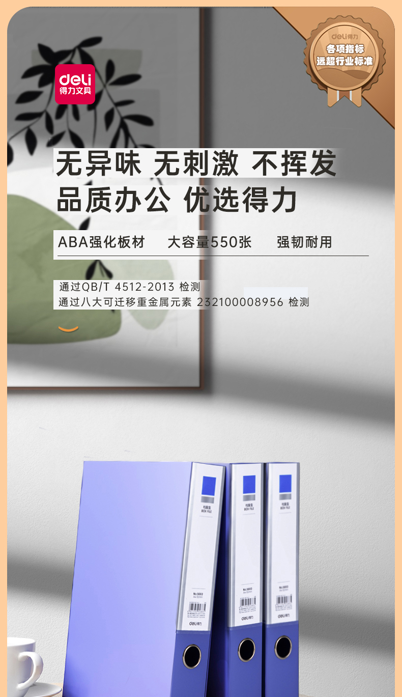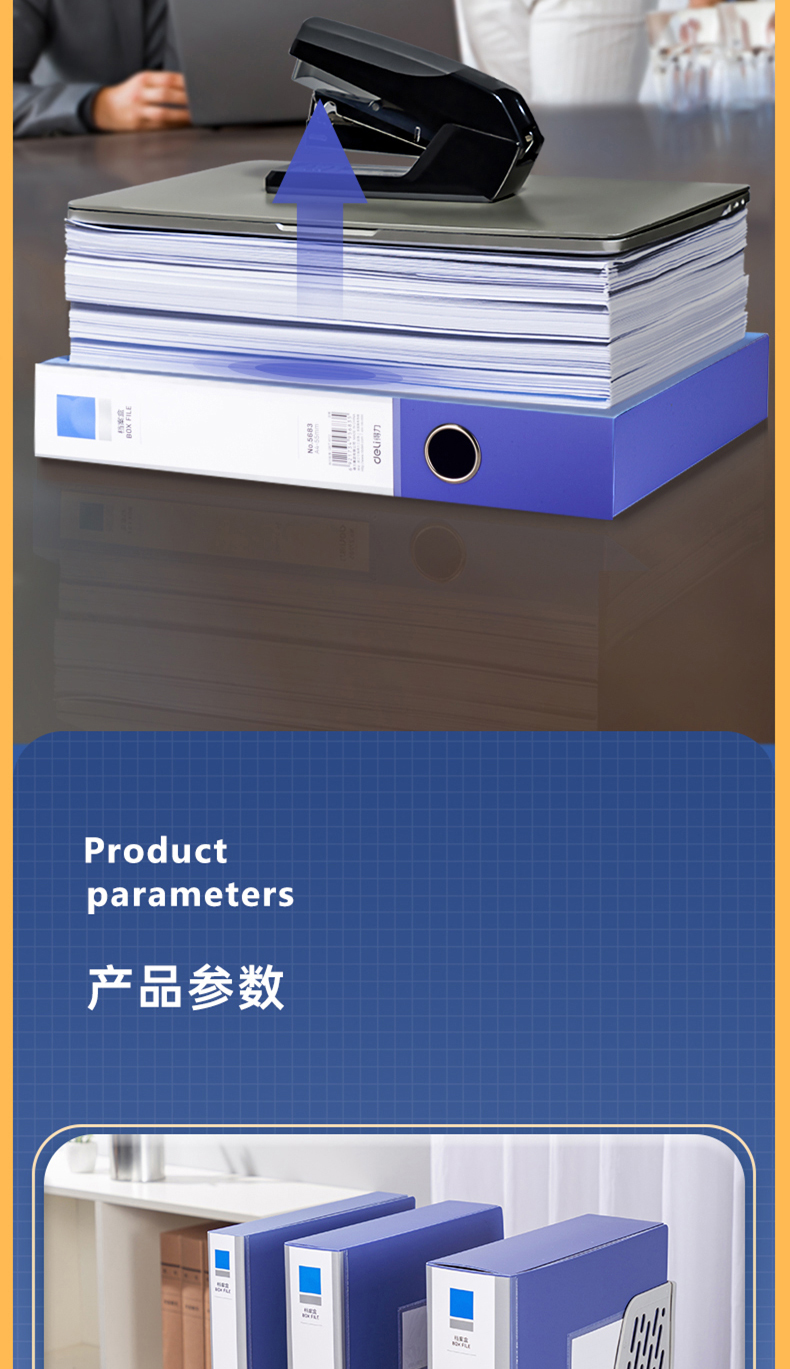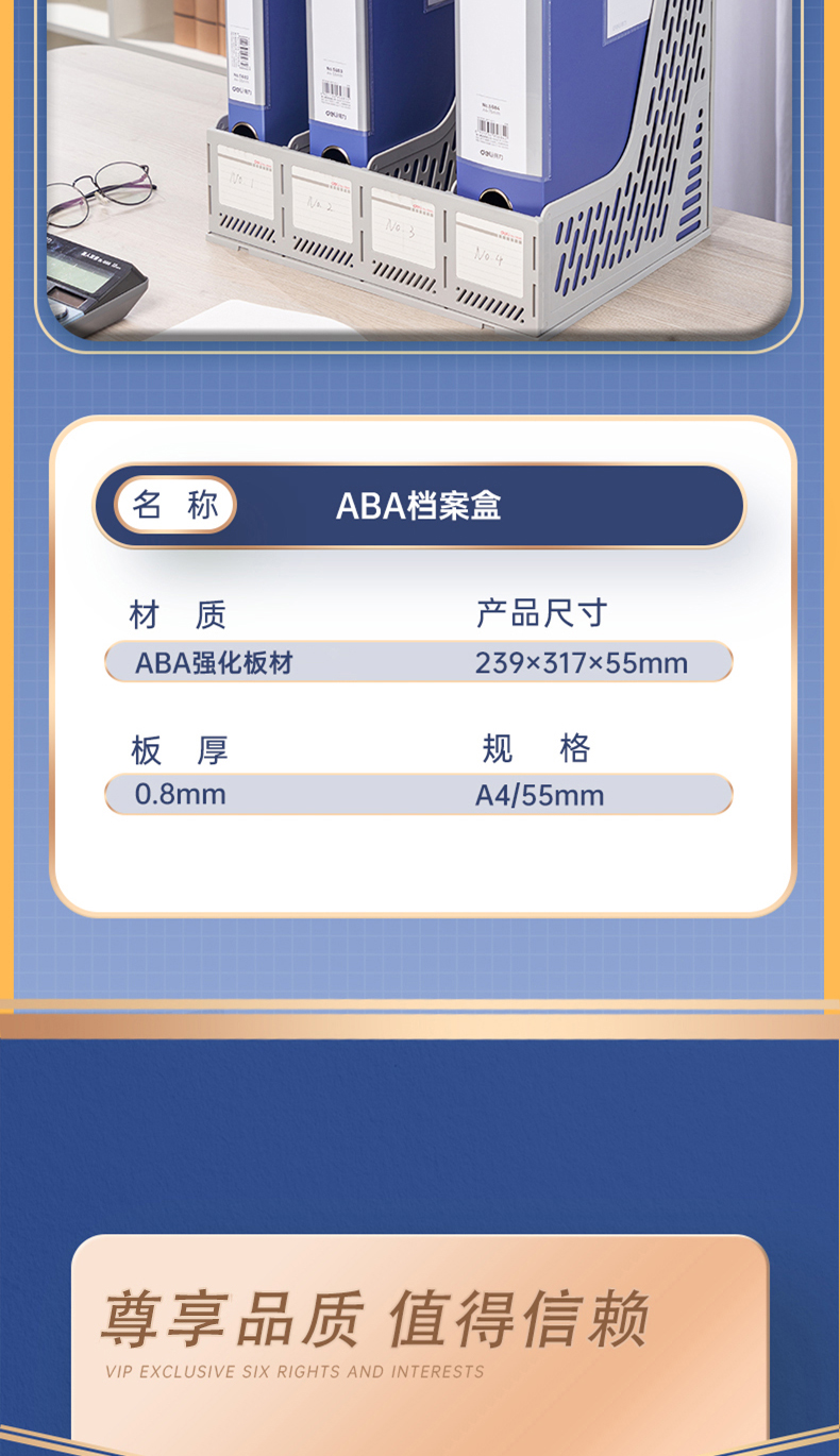 得力(deli)10只55mmA4粘扣档案盒塑料文件盒文件收纳资料盒办公用品升级背条孔槽27036蓝色