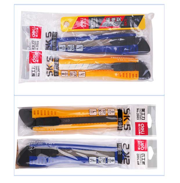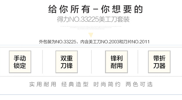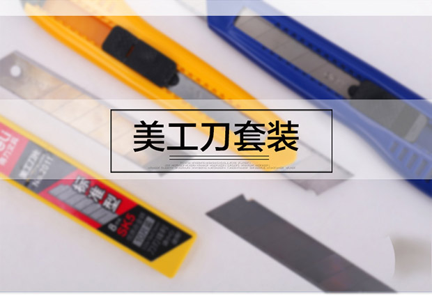 文具得力(deli)大号耐用美工刀套装美工刀2把+10片装刀片办公用品33225