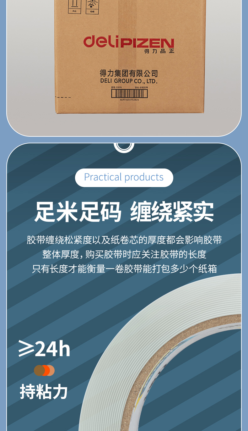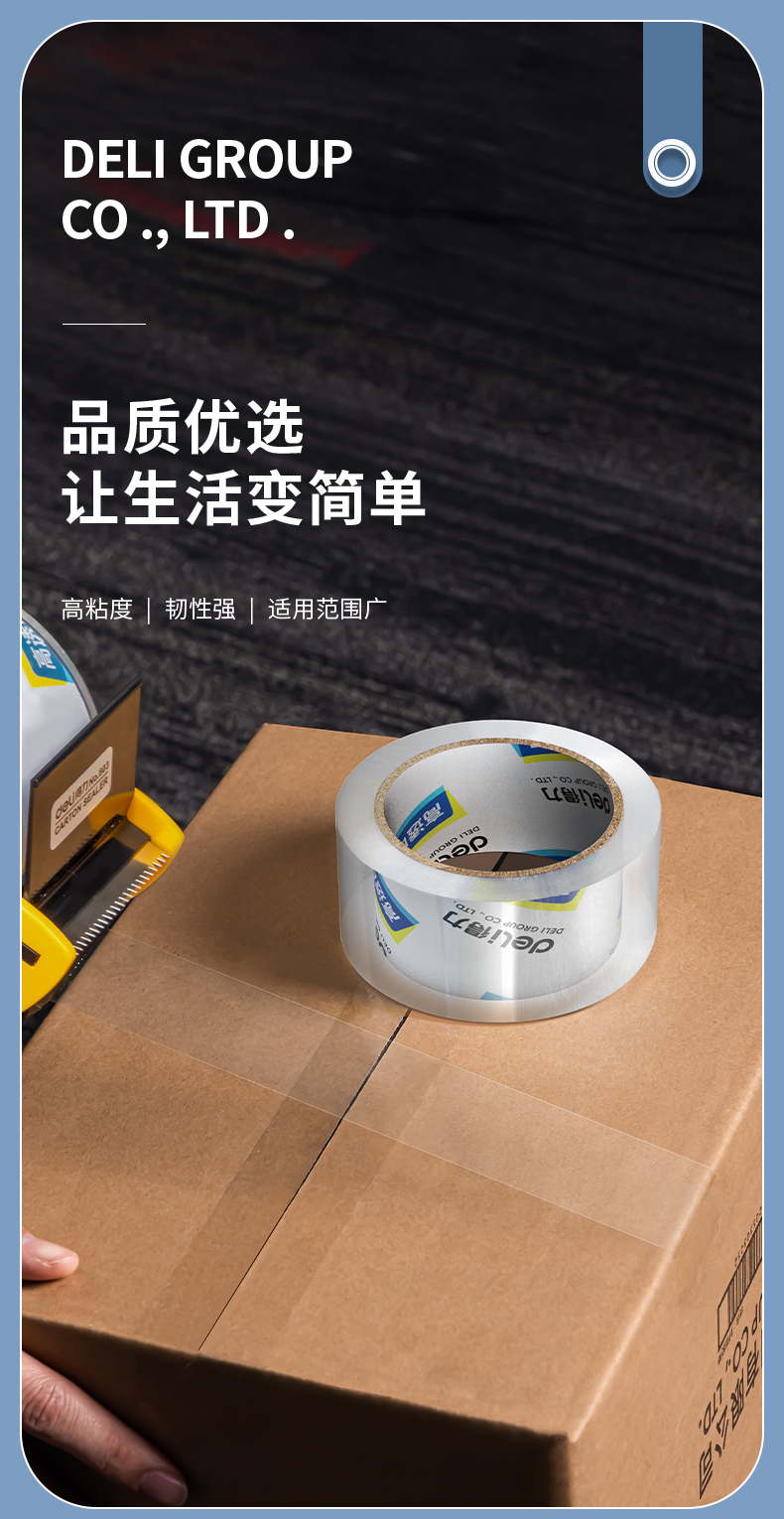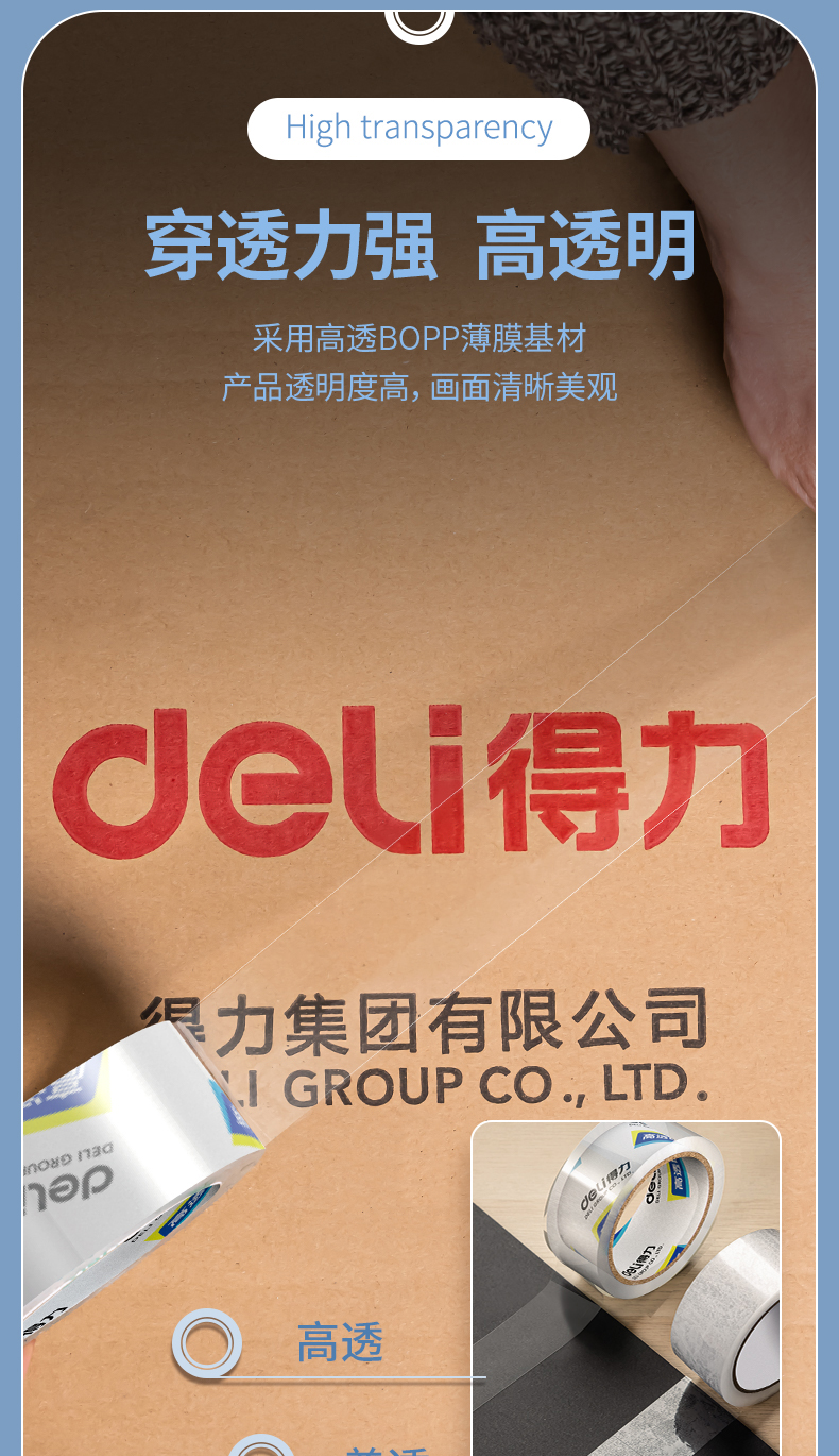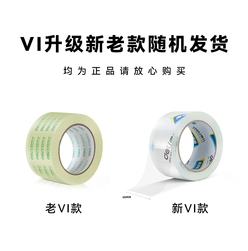 得力(deli)高品质高透明封箱胶带/打包胶带60mm*100y*50um(91.4m/卷)单卷装办公用品30369