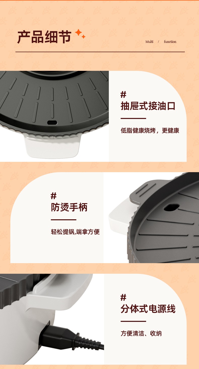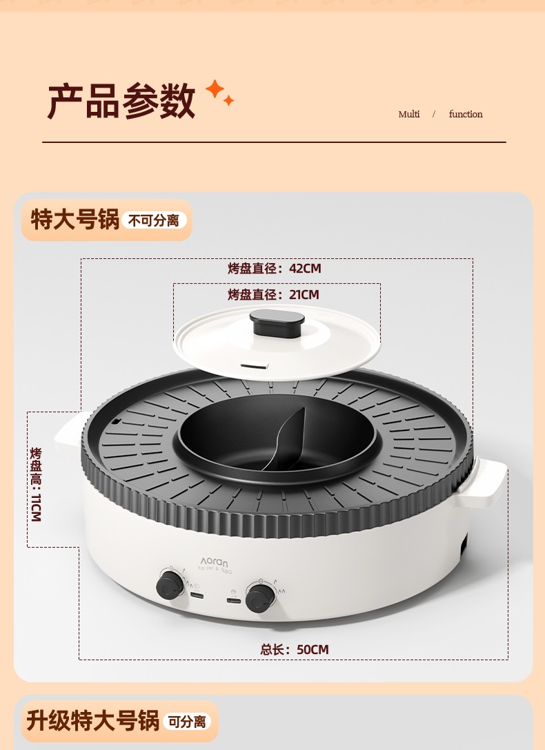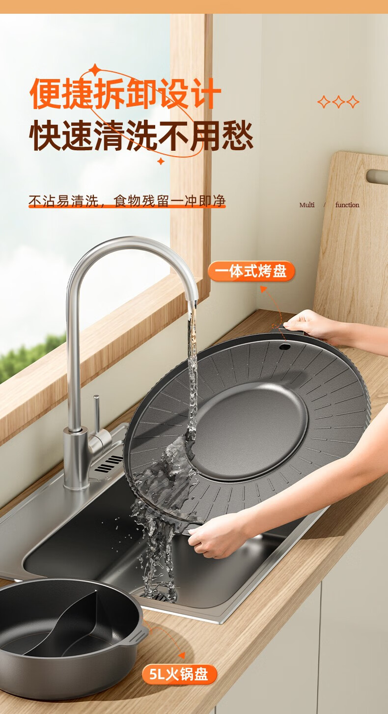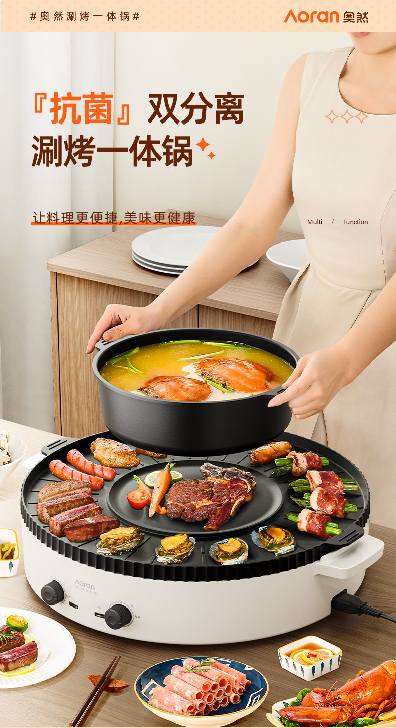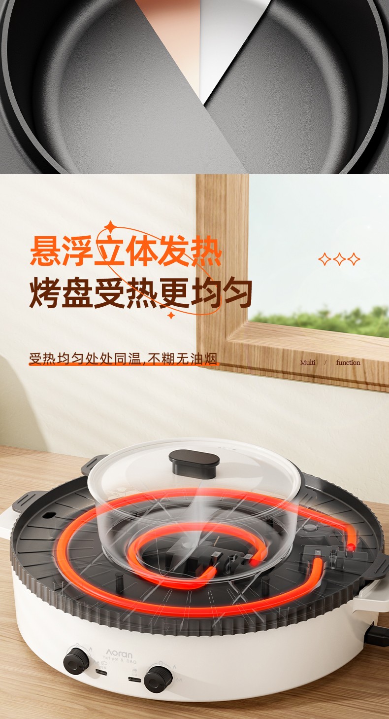 奥然电烤炉多功能烤涮一体锅家用无烟电烤肉盘烤串机多功能涮烤料理火锅分体式烤肉锅【超特大号】烤涮一体-圆锅单分离|3-15人