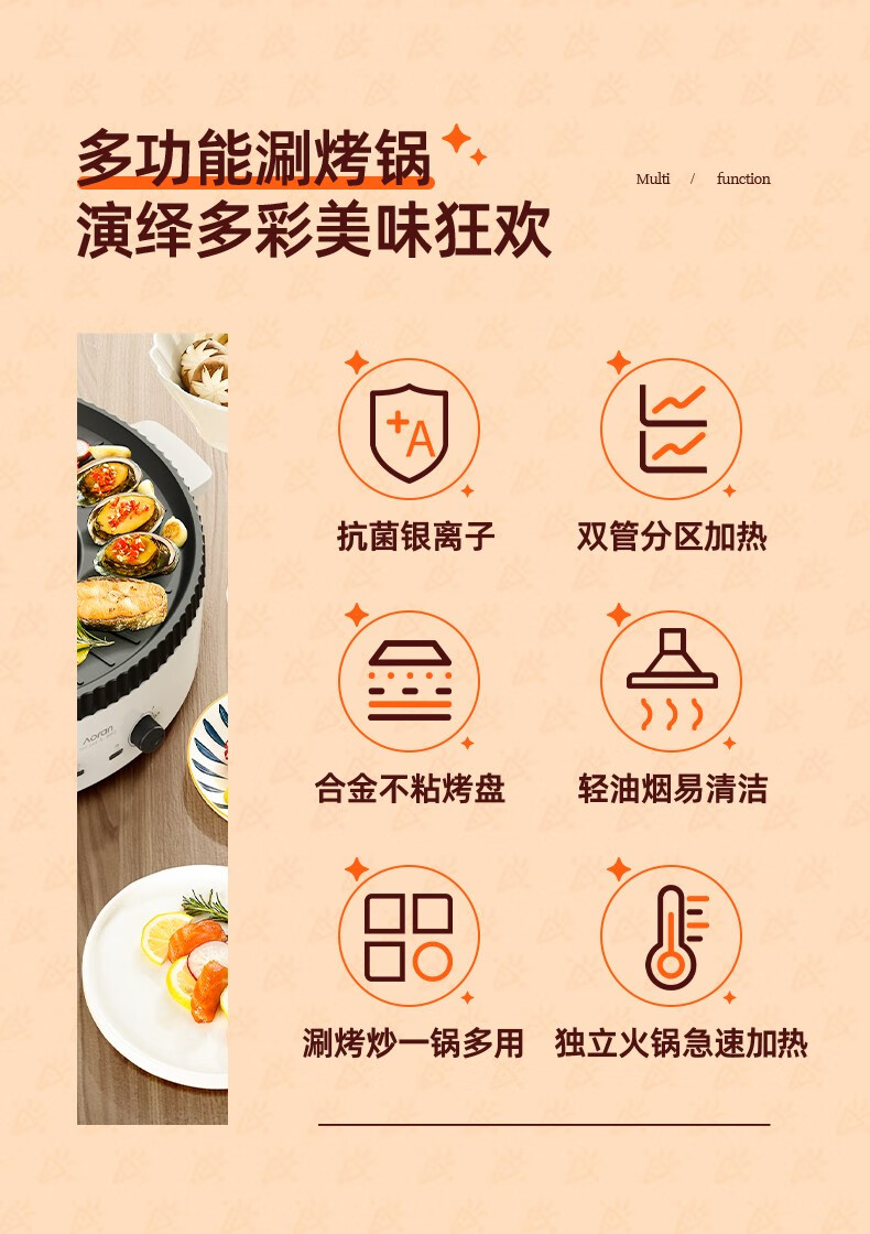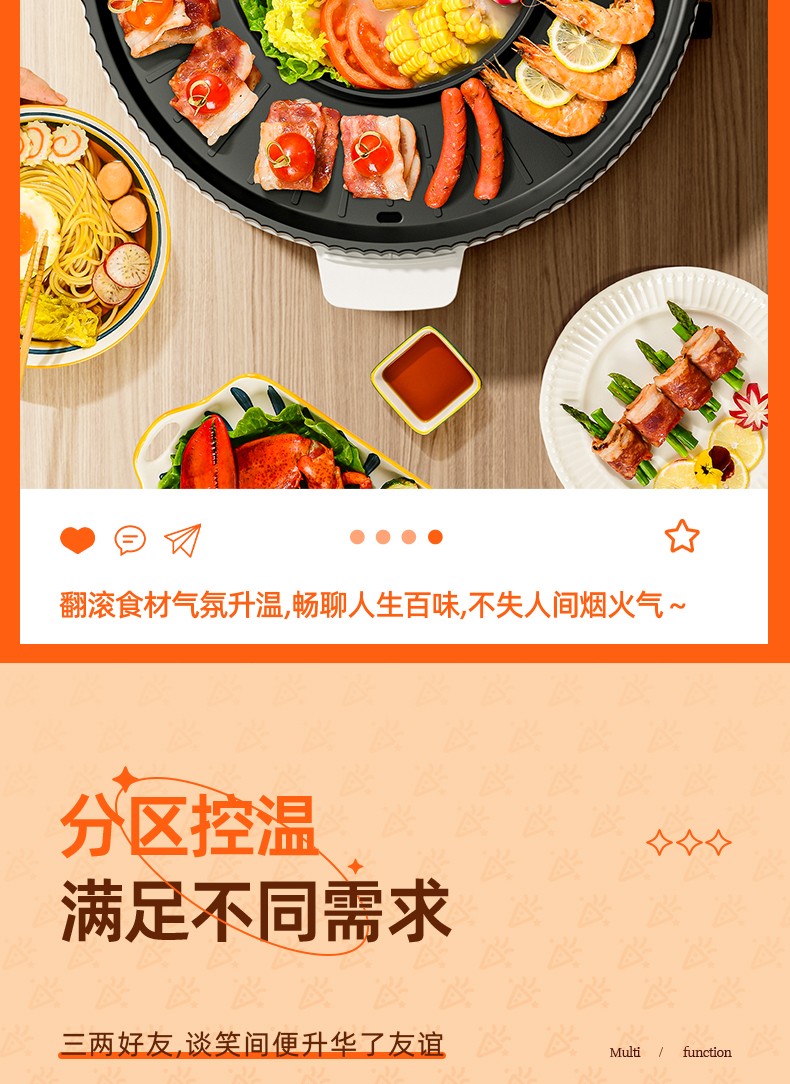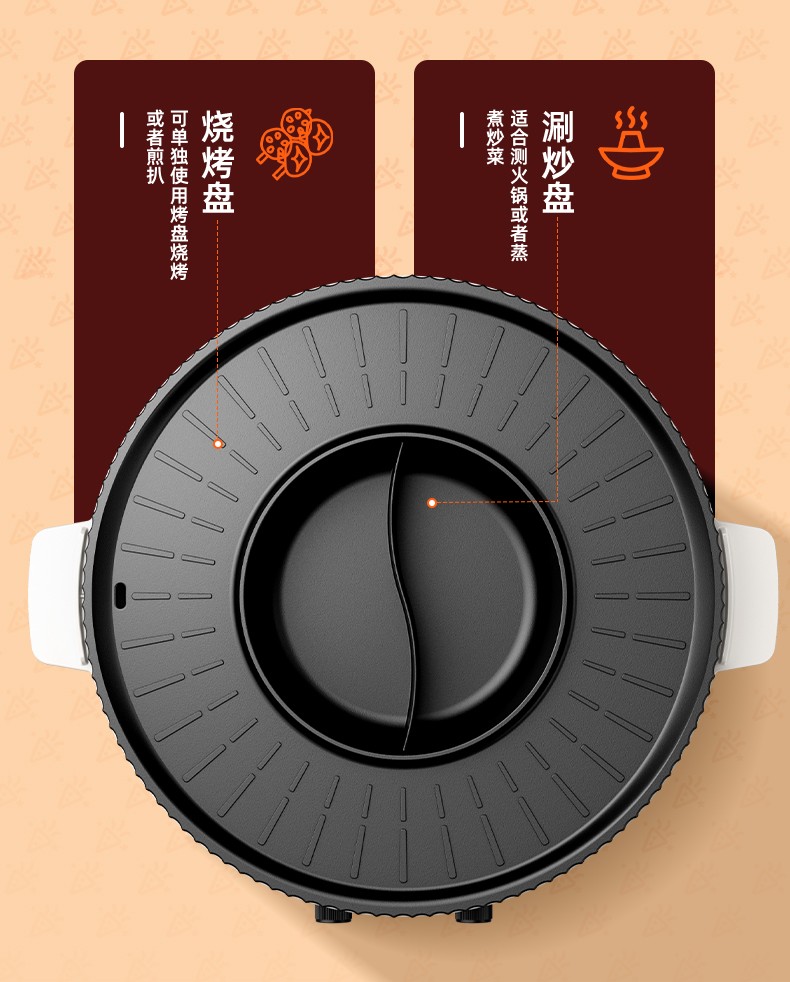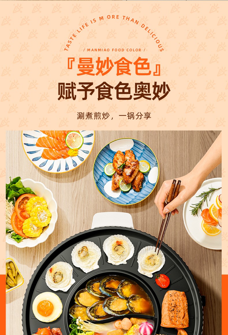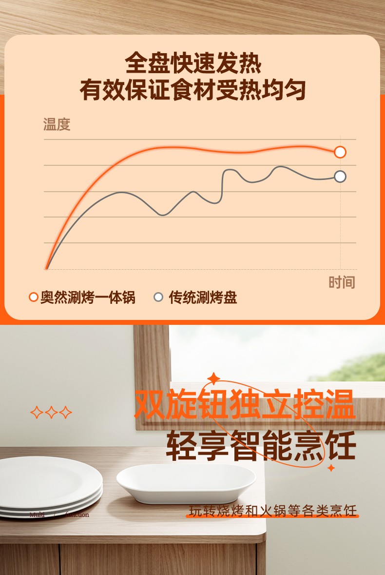 奥然电烤炉多功能烤涮一体锅家用无烟电烤肉盘烤串机多功能涮烤料理火锅分体式烤肉锅【超特大号】烤涮一体-圆锅单分离|3-15人