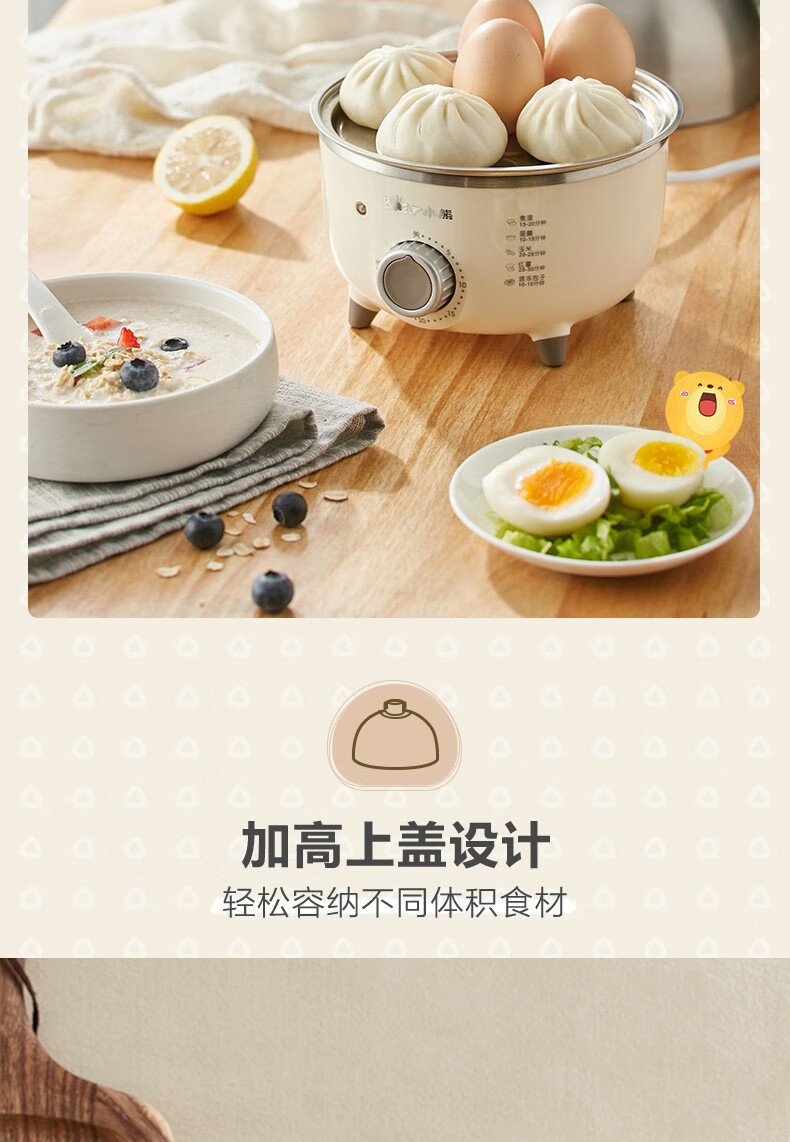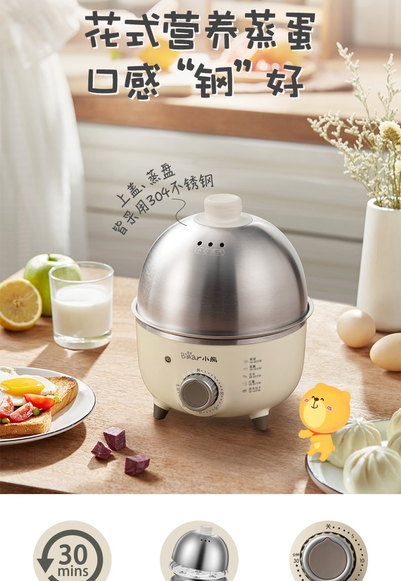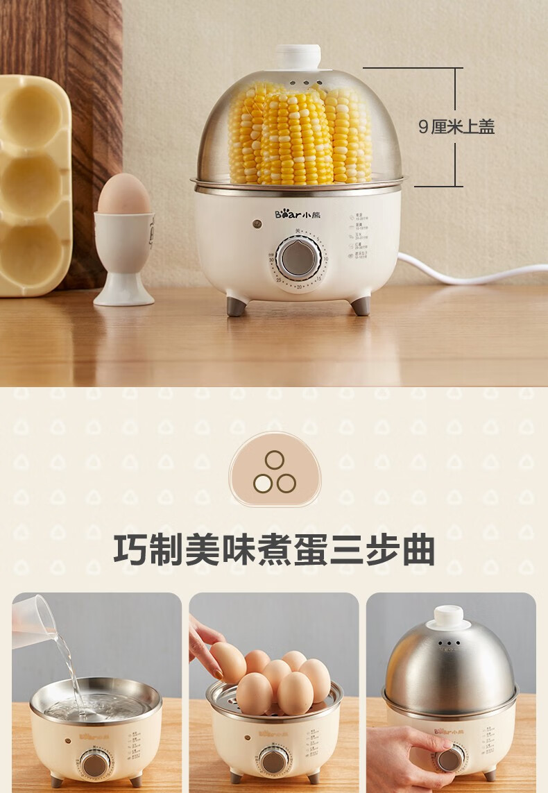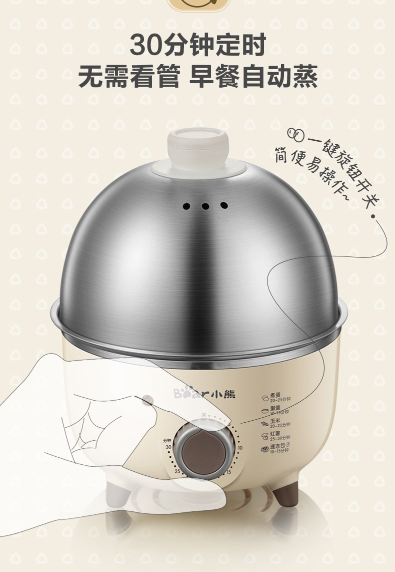 小熊(Bear)煮蛋器小型家用电蒸锅可定时不锈钢蒸蛋器自动断电蒸锅鸡蛋羹迷你鸡蛋器【旋钮定时+304不锈钢】ZDQ-B07C3