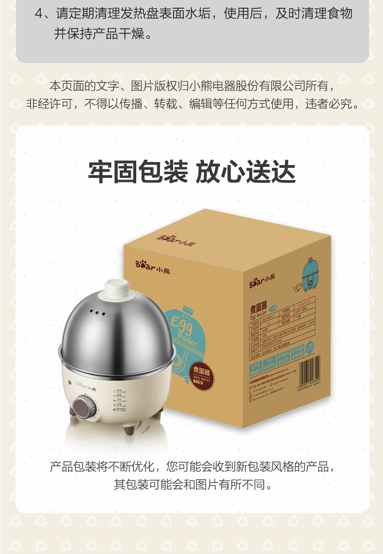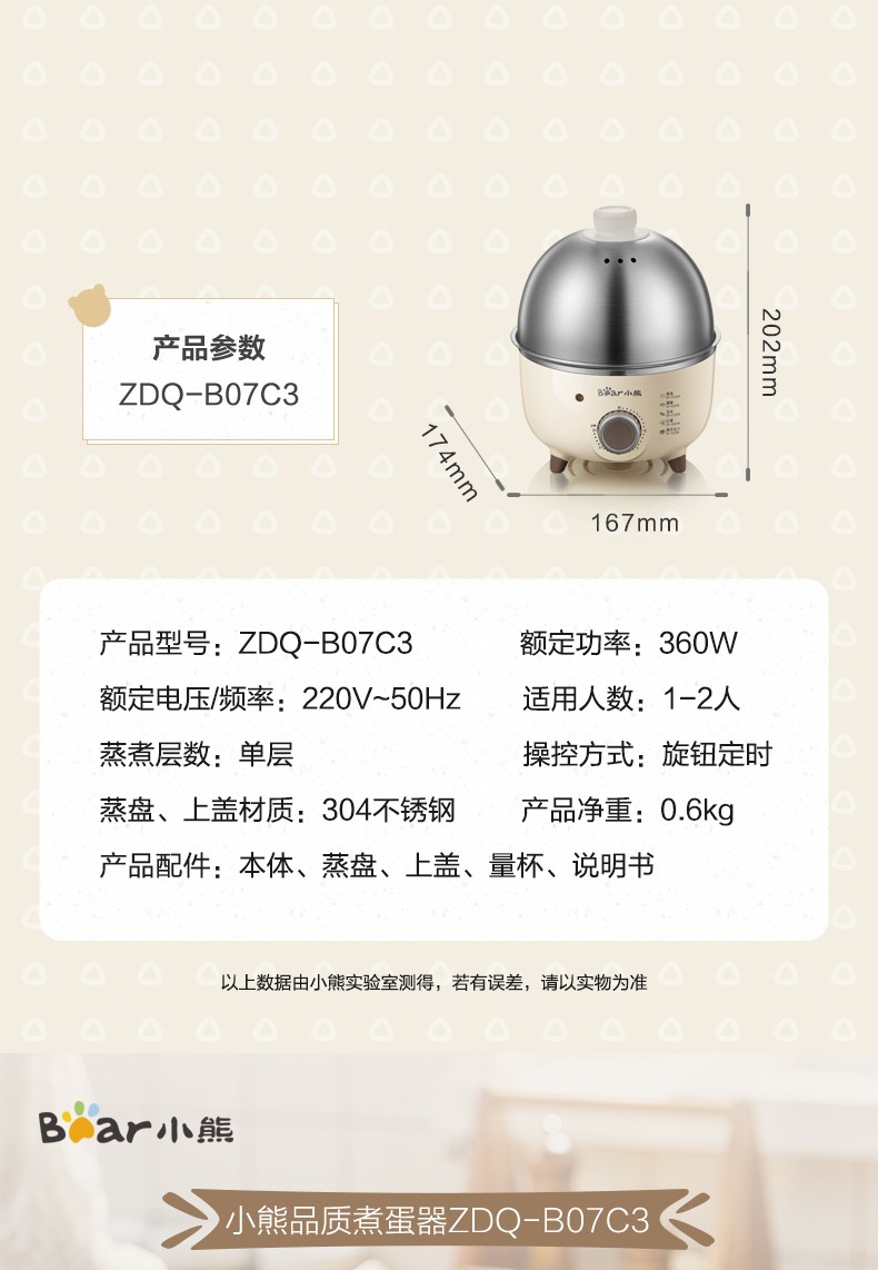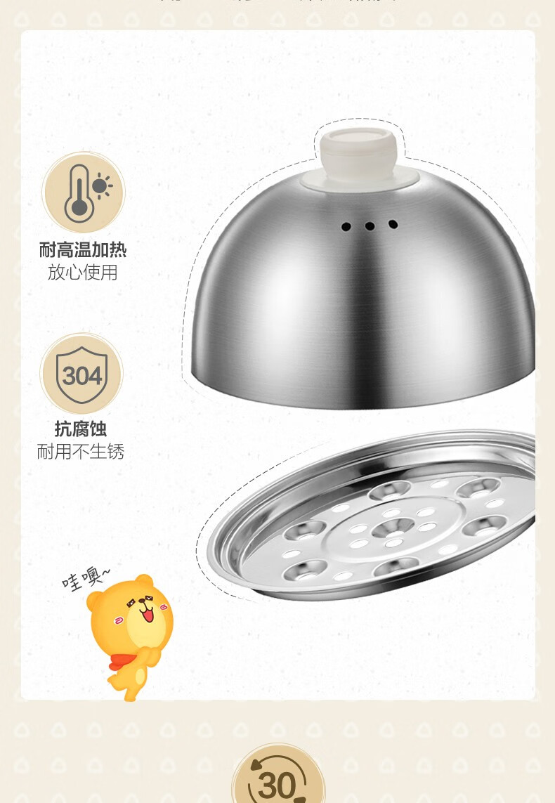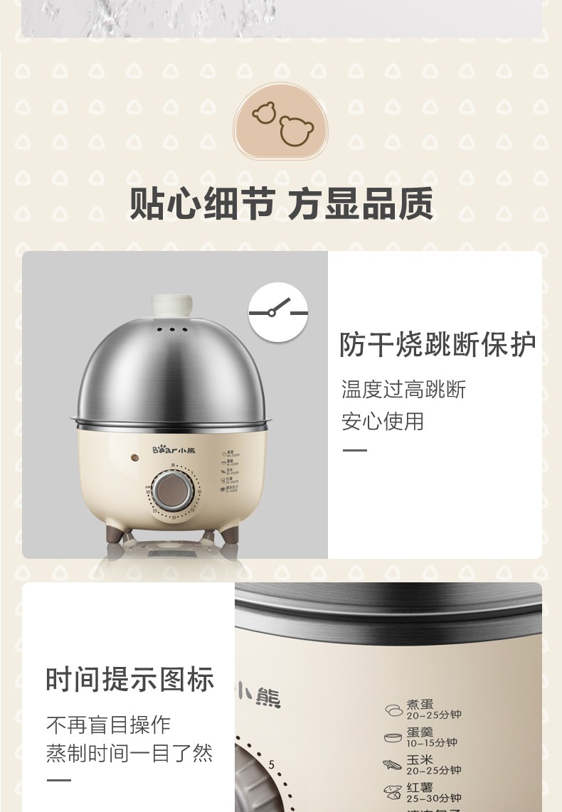 小熊(Bear)煮蛋器小型家用电蒸锅可定时不锈钢蒸蛋器自动断电蒸锅鸡蛋羹迷你鸡蛋器【旋钮定时+304不锈钢】ZDQ-B07C3